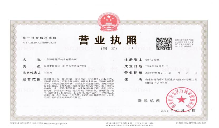 山東博通環(huán)保技術(shù)有限公司是一家專業(yè)從事環(huán)保、安全、消防的多元化技術(shù)服務(wù)公司,公司致力于打造專業(yè)的技術(shù)服務(wù)團隊,立足青島,輻射山東,服務(wù)范圍涵蓋:環(huán)保技術(shù)開發(fā)、技術(shù)轉(zhuǎn)讓、技術(shù)咨詢、技術(shù)服務(wù);環(huán)保工程;消防技術(shù)咨詢;消防設(shè)施檢測;消防安全評估;消防設(shè)施維護保養(yǎng);環(huán)境應急預案咨詢;安全生產(chǎn)標準化咨詢;場地環(huán)境調(diào)查報告編制,土壤與地下水環(huán)境調(diào)查及風險評估,水土保持方案編制,水土保持過程監(jiān)測,水土保持驗收工程,排污許可申報代理,清潔生產(chǎn)審核;...